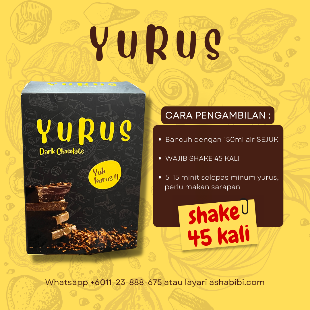 1 Kotak Yurus Dark Chocolate mengandungi 10 sachet di mana setiap hari kita perlu mengambil 1 sachet Yurus Dark Chocolate secara konsisten di pagi hari 5 minit sebelum makan sarapan. Anda disyorkan untuk mengambil 3 Kotak Yurus Dark Chocolate untuk penggunaan sebulan bagi memberi kesan dan perubahan yang ketara.